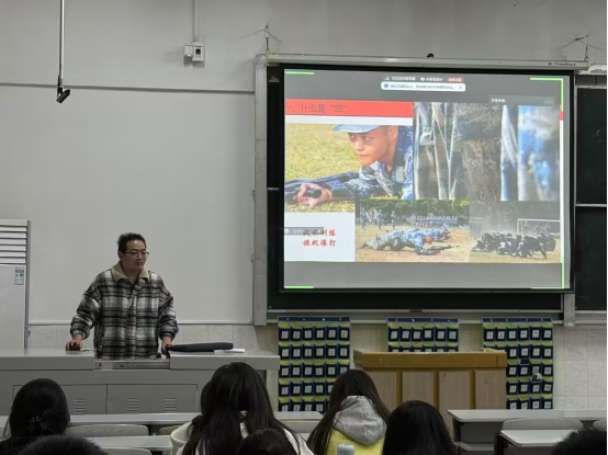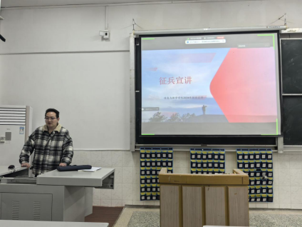 辅导员吴朝晖从征兵条件、征兵方式、征兵流程和优待政策这四大方面展开。他详细地讲解了当前老员工最关注的老员工应征入伍安置政策、学业优待政策、经济补助政策等问题,让大家对于征兵具体事项有全面了解。同时他也强调参军要具备一定的条件,除了身体素质要达到要求之外,在员工政治面貌、家庭背景、品性道德等方面也有相关要求。而后又结合PPT上的图片来展示军旅生活的艰苦与不易,告诫同学们要考虑清楚,不能做逃兵。