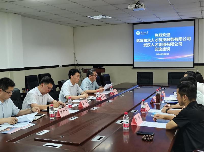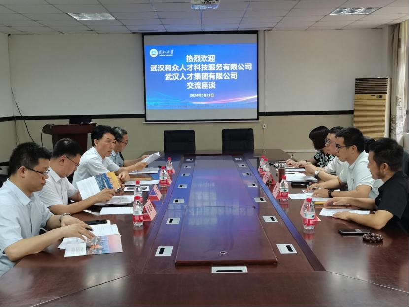 (通讯员 陈京玲/崔语涵)为了帮助企业寻找、引进和培养人才,促进企业的人才流动和资源优化配置,提高企业的市场竞争力和创新能力。公司于5月21日下午2点在8教210召开人才交流座谈会。应邀参会企业代表分别是武汉人才集团教培部陈志诚总监、武汉人才集团教培部刘彦麟经理、武汉和众人才科技服务有限公司企服部李澳总监。公司党委书记李喜成、党委副书记谷军、副经理李治、副经理李向军参与此次座谈。