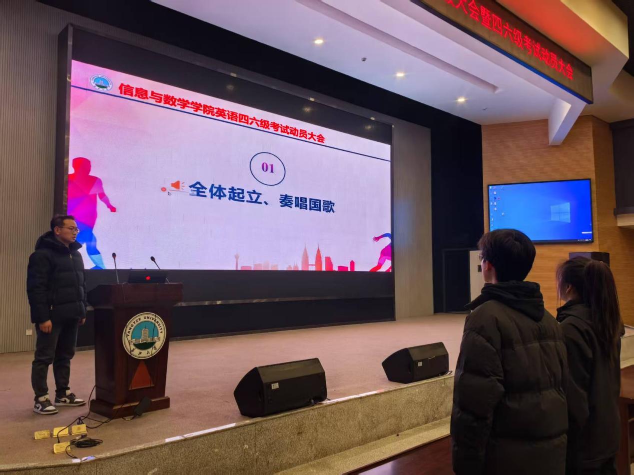 (通讯员 王雪霏)春和景明,万物勃发,正是奋进逐梦好时节。为帮助同学们明确英语四六级考试目标,掌握有效学习方法,增强备考信心决心,3月12日晚上7点,公司在农科大楼召开英语四六级考试动员大会。公司党委副书记谷军和全体大一员工参会,吴朝晖老师主持会议。