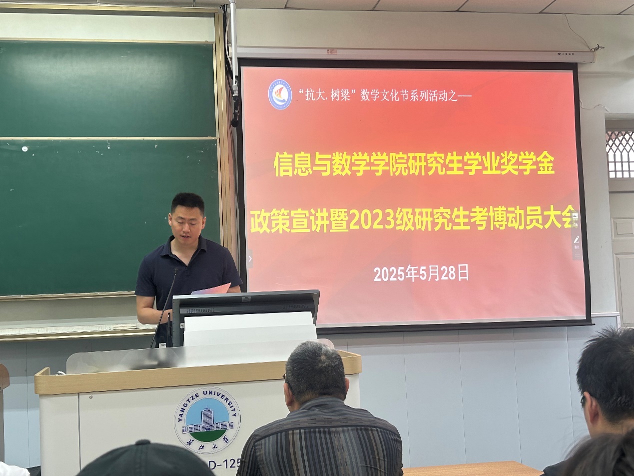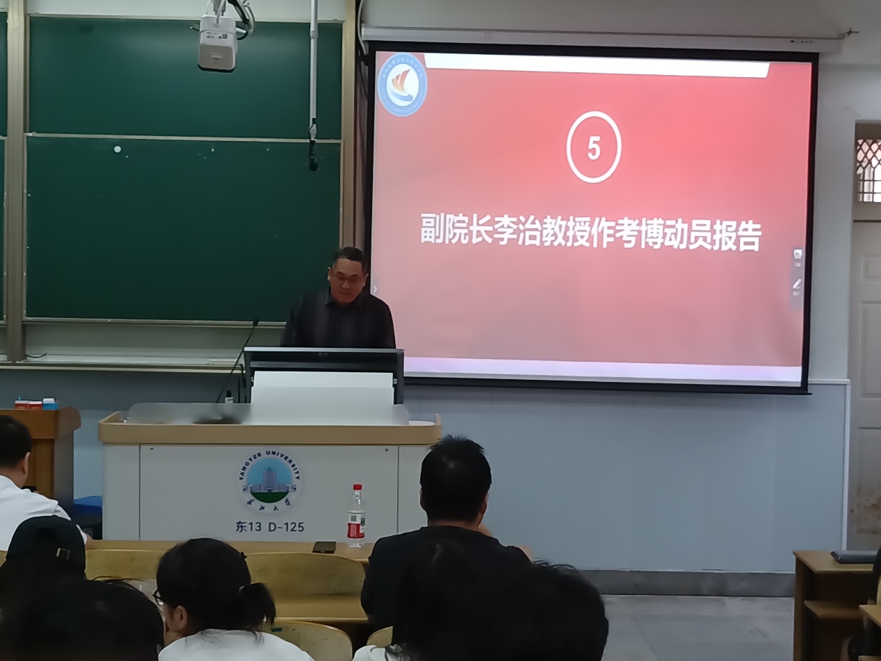 最后,副经理李治教授进行考博动员,他表示学院将持续为研究生搭建学术交流平台,提供个性化指导,助力同学们实现深造梦想。他号召全体研究生以此次动员大会为契机,科学规划未来,努力提升自身实力,为学院和学校的发展贡献力量。