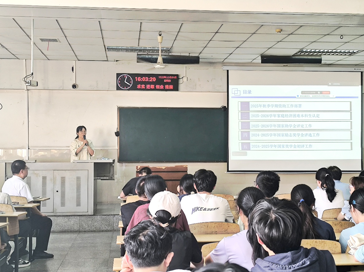 会上,学工办主任姜曼聚焦奖助工作开展讲解。她围绕助学金、励志奖学金、国家奖学金的评选标准、申请流程及注意事项展开详细说明,以清晰的逻辑和通俗的语言,为在场师生梳理出奖助政策的关键要点,让员工干部能更准确地理解和传达相关政策。