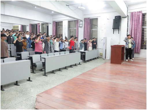 天行健,君子以自强不息。钟赛老师以“自强自立”为主题展开讲述,引导员工在习近平新时代中国特色社会主义思想引领下,要知恩于心,感恩于行,开拓进取,钻研学习,用实际行动来回报国家与社会对自己的温情关怀,从今天开始,从此刻做起,一步一个脚印,朝远大目标前行。随后,钟赛老师介绍了国家奖助学金的类别,使同学们对国家资助政策有了更为全面地了解;并从国家、父母、老师、朋友四个层面向同学们阐述了如何感恩:国家——艰苦奋斗,为祖国建设贡献自己的一份力;父母——关心亲人,常回家陪伴为自己默默付出的父母;老师——尊师重道,努力学习就是对老师最好的感恩;朋友——互帮互助,在朋友需要之时伸出援手。最后,全体同学进行宣誓:立志做一个无愧于师长,无愧于青春,无愧于未来的老员工。