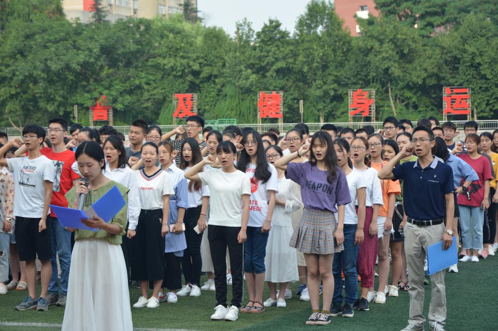活动伴随着激昂雄壮的《国歌》声拉开帷幕,鲜艳的五星红旗冉冉升起,迎风飘扬,全体师生肃立于东校区田径场。