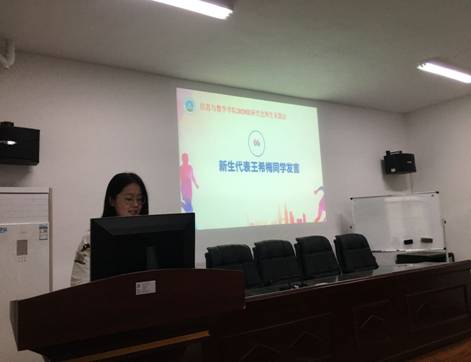 最后,王希梅同学作为新生代表发言。她就自己研究生期间的学业规划,读研目标等与同学们进行了分享。
