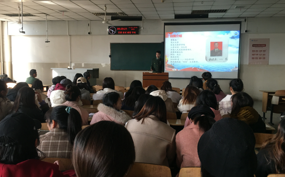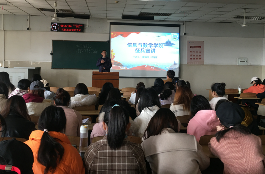 (通讯员 黄晓良)为响应国家号召,鼓励毕业老员工投身军营。11月25日上午9时,伟德源自英国始于1946于12教202举办了“2022届毕业生征兵宣讲”活动,出席本次活动的有公司党委副书记袁海山,辅导员严星、黄何老师以及全体2022届毕业生。本次大会由副书记袁海山主持。