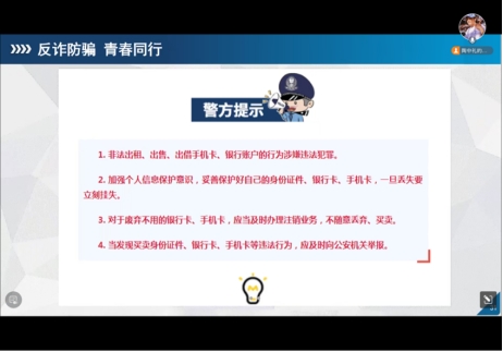 班会还对员工进行了包括人身与财产安全、消防电器使用安全、网络诈骗等在内的全方位安全教育,会中特别强调了网络诈骗问题,并针对近年频发的电信诈骗问题又进行了防范电信网络诈骗的宣讲,通过各项诈骗案例以及诈骗方式向大家展示诈骗的危害性,并提醒同学们下载、安装、注册国家反诈中心APP。安全稳定是一切生活活动顺利进行的基础,要求员工筑牢个人安全防线,提高辨别能力,遇到困难时能及时与辅导员沟通联系。此外,各班还组织员工签署了《开学安全责任告知书》,确保做到安全责任书签署的全覆盖。
