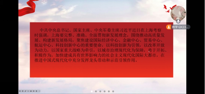 会议主要围绕习近平主席上海考察期间的重要讲话、中共中央政治局召开会议、习近平主席在北京河北考察灾后恢复重建工作以及第十个国家宪法日之时所作出的重要指示这几个方面展开。重点学习了习近平总书记强调聚焦建设“五个中心”的重要使命,加快建设社会主义现代化国际大都市的讲话,深入领会中共中央政治局召开的会议精神及审议的各项意见条例。