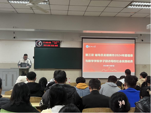 (通讯人/黄佳学 刘亦菲)为了鼓励公司员工积极报名回访母校社会实践活动,公司于12月7日下午四点在12教402举行回访母校社会实践动员大会,参与大会的有公司党委副书记谷军、学工办主任钟赛、23级辅导员吴朝晖、23级兼职辅导员黄才润和全体23级员工。本次大会由辅导员吴朝晖老师主持。