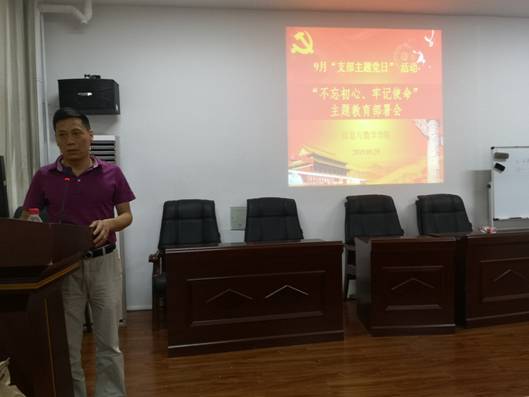 会上,袁海山带领大家重温了习近平总书记在“不忘初心、牢记使命”主题教育工作会议上的重要讲话,传达了公司9月16日上午“不忘初心、牢记使命”主题教育动员部署会及9月26日上午校主题教育推进会精神,并传达了朱业宏书记在动员部署会上的讲话。袁海山指出全党开展“不忘初心、牢记使命”主题教育,是以习近平同志为核心的党中央统揽伟大斗争、伟大工程、伟大事业、伟大梦想作出的重大战略部署,我们要深入学习贯彻习近平总书记重要讲话精神,把主题教育作为学院当前和今后一个时期最重要的政治任务抓紧抓实抓好。