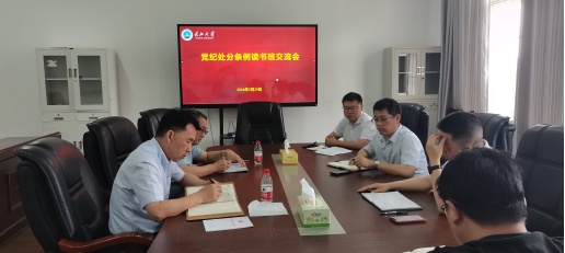 随后,全体班子成员针对一个月以来学习党纪处分条例的读书感悟展开交流。经理张涛表示全体党员干部进一步准确把握“六项纪律”的主旨要义和规定要求,进一步明确日常言行的衡量标尺,努力把他律要求转化为内在追求,做自我革命的表率、遵规守纪的标杆,坚定不移推动学校全面从严治党向纵深发展。党委副书记谷军表示要加强警示教育,抓好以案促学、以案说纪,教育引导全体师生员工把遵规守纪印刻在心,将具体要求外化于行。要继续深学、细悟、内化党的纪律,推动党纪学习教育入脑入心、走深走实,将党纪学习教育成果转化为推动学校事业发展的坚实力量,为学院高质量发展贡献力量。副经理李治表示深入学纪,清楚知纪,真正明纪,模范守纪;充分发挥战斗堡垒作用,引领广大教师党员围绕有组织科研、有组织教学、有组织社会服务、有组织开展国际交流合作等工作,推进学院各项事业高质量发展。副经理李向军表示将不忘立德树人初心,牢记为党育人、为国育才使命,通过认真学习解决思想问题,加强学以致用,勇于改革创新。
