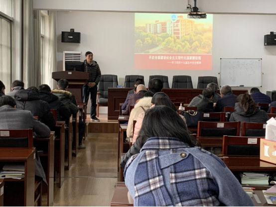 高迎斌以《学习领会精神,紧跟时代步伐》为题,从会议召开的背景、会议取得的重要成果、会议的重要意义、《中共中央关于制定国民经济和社会发展第十四个五年规划和二〇三五年远景目标的建议》(以下简称)的框架及主要内容等方面对十九届五中全会精神作了宣讲。