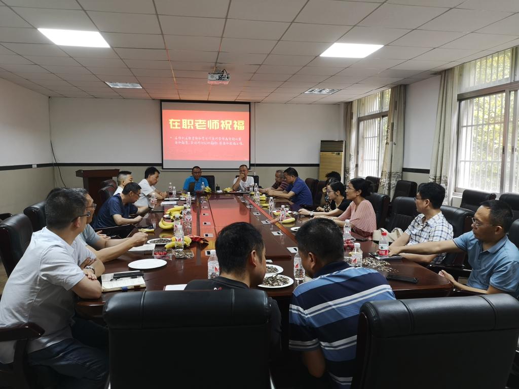接着,燕子宗、覃章景两位老师依次介绍了自己的教育背景和工作经历,分享了在校教学中的经验和故事。现场到会的20余名在职教师代表依依不舍地送上美满祝福。