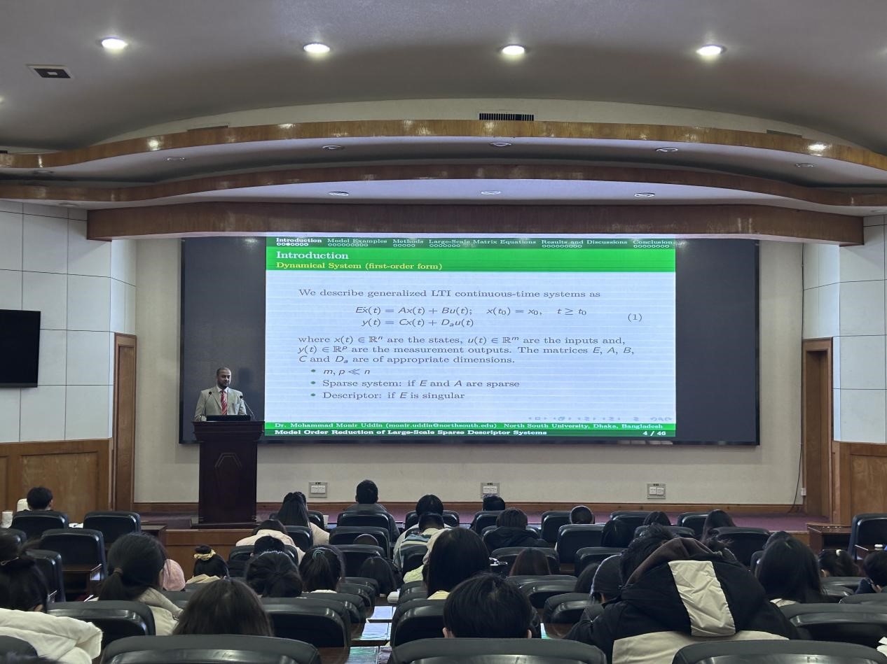 2023年12月25日,孟加拉国南北大学数学和物理系教授Mohammad Monir Uddin应邀访问公司,在11教学术报告厅为学院师生作了题为“Model Order Reduction of Large- Scale Sparse Descriptor Systems(大规模稀疏描述系统的模型降阶)的学术报告,报告由经理张涛主持。伟德源自英国始于1946的青年教师、研究生和本科生参加了本次学术报告会。