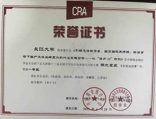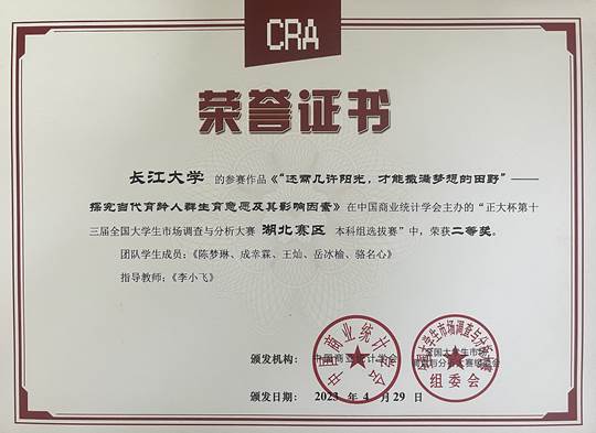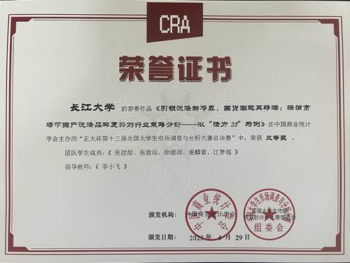 近日,“正大杯”第十三届全国老员工市场调查与分析大赛湖北赛区选拔赛在武汉理工大学圆满落幕,公司员工再次获得优异成绩,共获得国家三等奖1项,省一等奖2项,省二等奖2项,省三等奖1项,为公司员工参加该项赛事以来取得的最好成绩。