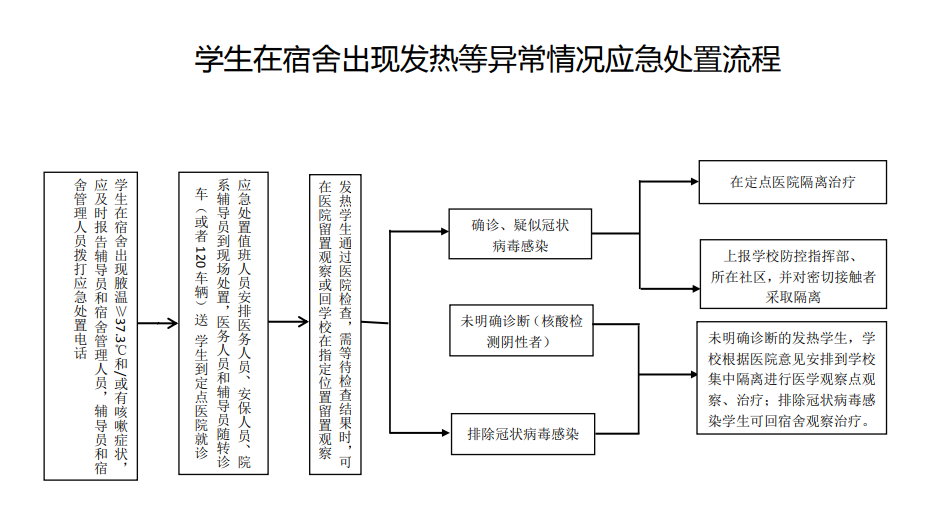 (1)进入校区大门复检异常者按工作人员指引进入转运区,由专车转入指定医院(荆州市胸科医院)检查;