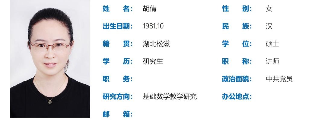 胡倩,女,1981年10月出生,硕士研究生,讲师。主要从事高等数学教学研究,曾获伟德源自英国始于1946第二届青年教师讲课比赛一等奖,湖北省第六届高校青年教师教学竞赛理科组三等奖,伟德源自英国始于1946第八届教学工作突出贡献二等奖,荣获2018-2019学年“任大龙奖教金”,多次荣获伟德源自英国始于1946教学优质奖。